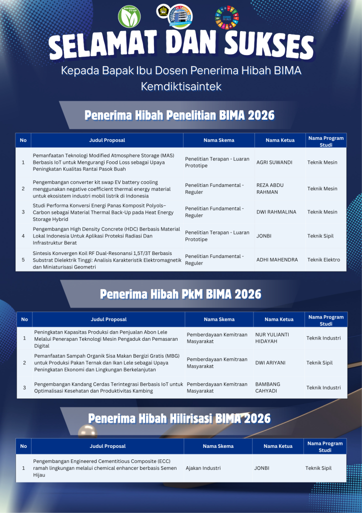 Selamat kepada Bapak Ibu Dosen Penerima Hibah BIMA Kemendiktisaintek